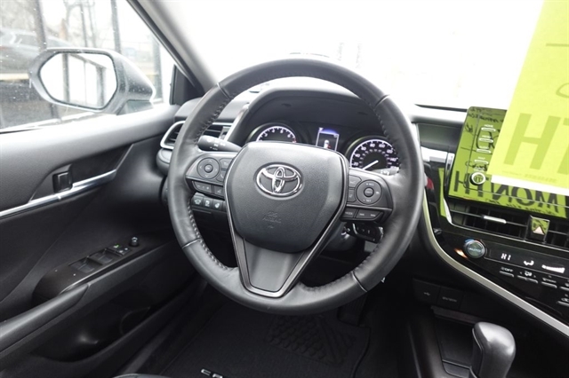 Here's another one of the best-selling Toyota Camry's and if you haven't driven one you're missing out on a quality automobile that provides great features, great fuel mileage and all at a price that just makes good sense. This unit comes equipped with the 2.5l 4 cyl that produces a super impressive 178hp and still rated at 35mpg on the hwy and we all love great fuel economy. The options include the SE Trim Package, Night Shade Package, Rear View Camera, Power Drivers Seat, Alloy Wheels, Keyless Entry, Bluetooth, Aux-USB Ports and of course all of the Standard Power and Safety Features and the balance of the remaining Factory Warranty. We offer bank financing with excellent rates and terms right here at the dealership, stop and see why so many people will only purchase their used vehicles from Ideal Wheels with the original Ideal Advantage which provides no labor charge on most repairs for as long as you own the vehicle. Don't forget to check out the complimentary Carfax.