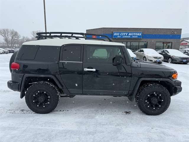 Get ready to tackle any terrain with this 2010 Black Toyota FJ Cruiser! Equipped with a powerful 4.0L V6 engine and 4-wheel drive capability, adventure is just a drive away. With a sleek white roof contrasting the bold black exterior, this FJ Cruiser stands out from the crowd. The interior features a spacious cabin with rubber-like flooring for easy cleaning after your outdoor excursions. Stay comfortable with adjustable headrests in all rows and enjoy the convenience of multiple cupholders and bottle holders throughout. Safety is a top priority with front and side airbags, anti-lock brakes, and child safety locks. Whether you`re cruising down the highway or exploring off-road trails, this FJ Cruiser is ready for any journey. Plus, rest assured with the available Carfax report providing peace of mind for your purchase. Don`t miss out on the opportunity to own this rugged and reliable SUV - come take it for a spin today! Visit Big City Motors to shop our great deals. You can call 605-338-8001 to schedule your test drive today.